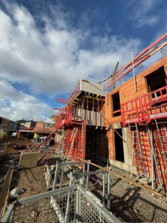 L’identité architecturale du projet se caractérise par trois niveaux de logements superposés. Les deux volumes construits s’articulent autour d’une cage d’escalier commune et les dessertes individualisées des logements sont traitées par des coursives extérieures.