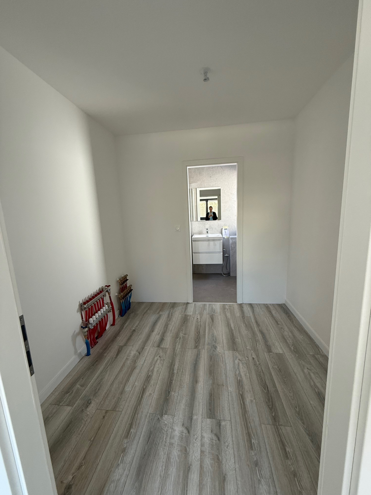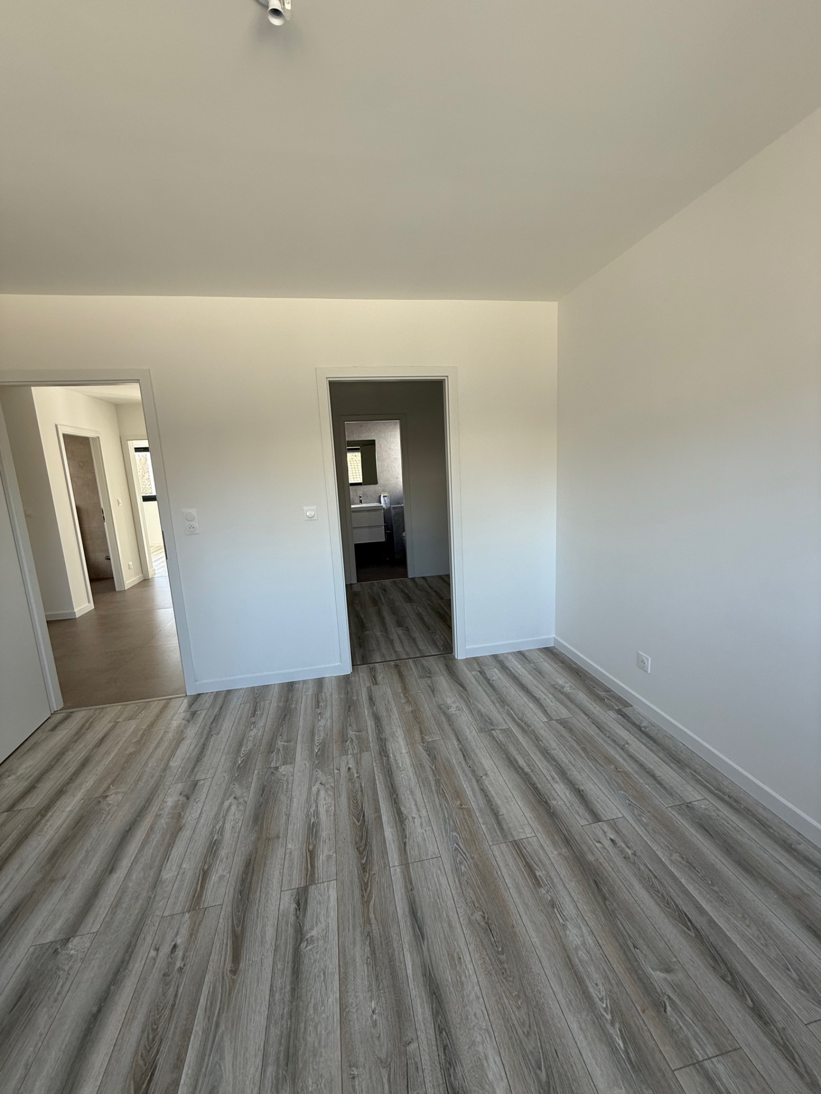 A l'étage : 3 chambres, une de 12.08m2, une de 12.31m2 et une troisième de 12.40m2 avec attenants : un dressing et une salle d'eau (avec une douche et un WC), une salle de bain (WC, meuble vasque, douche),