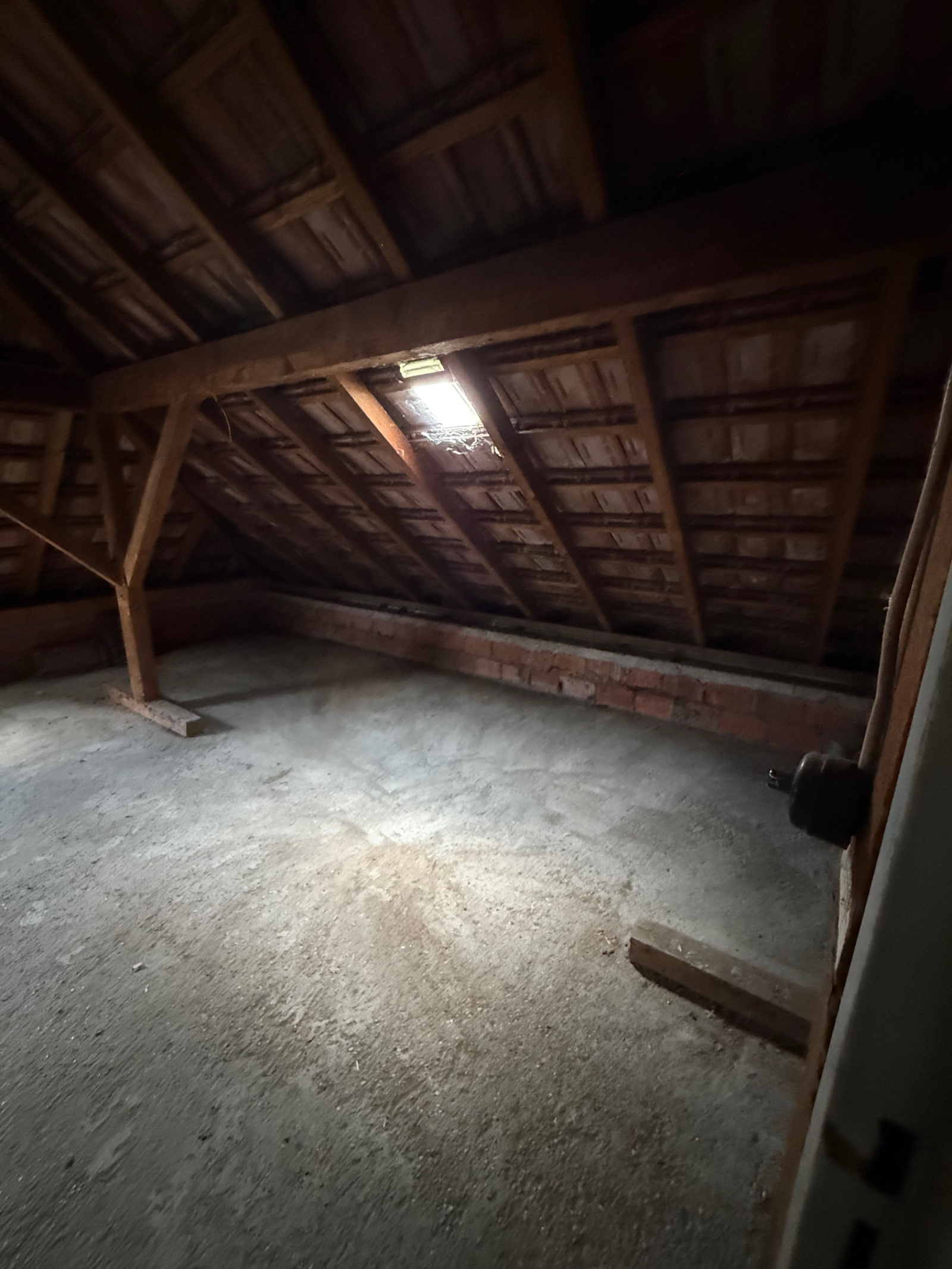À l'étage, deux grands greniers aménageables, deux chambres et un dégagement avec lavabo.