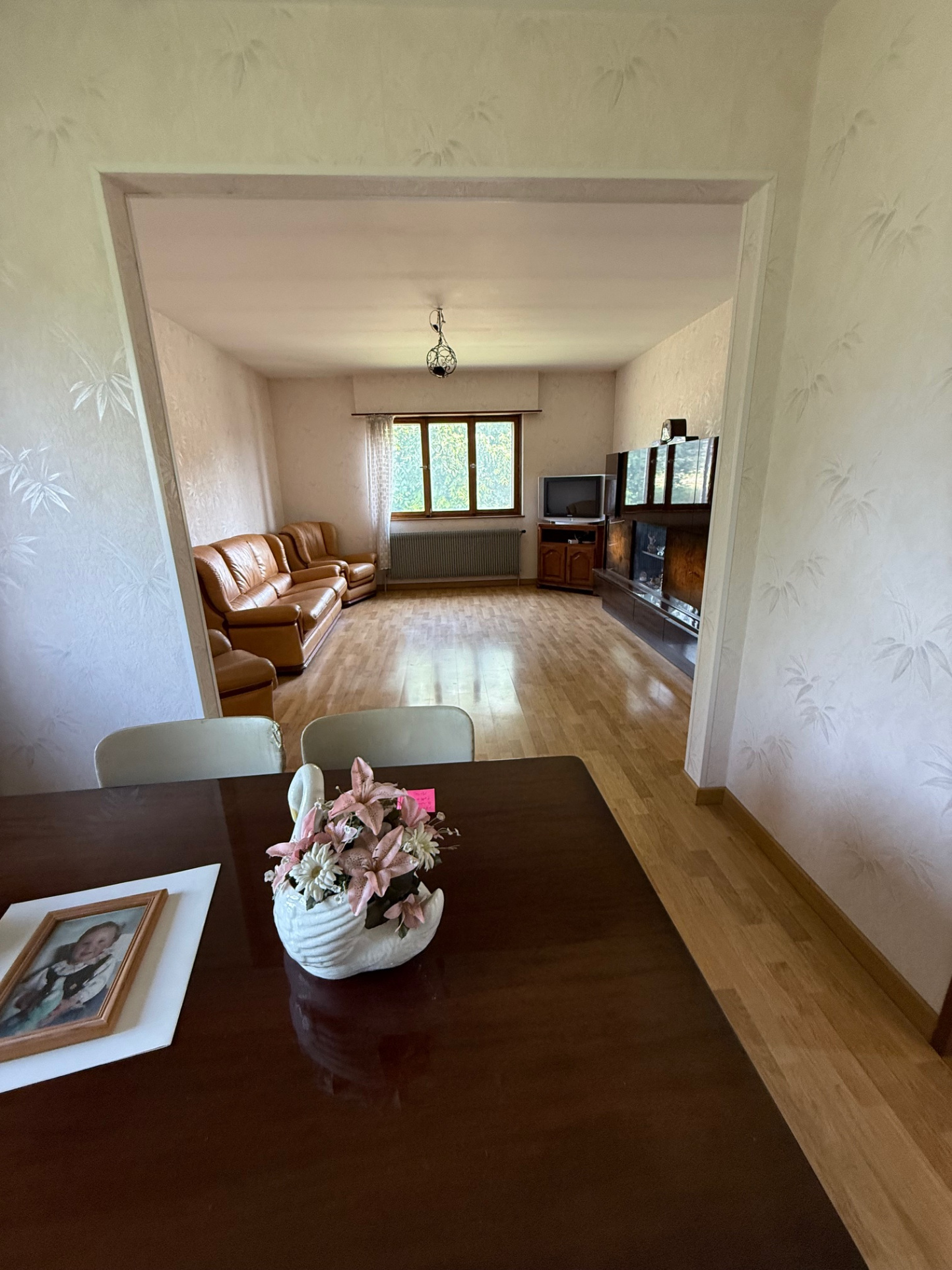 Maison des années 1970 à rénover entièrement. Elle offre :